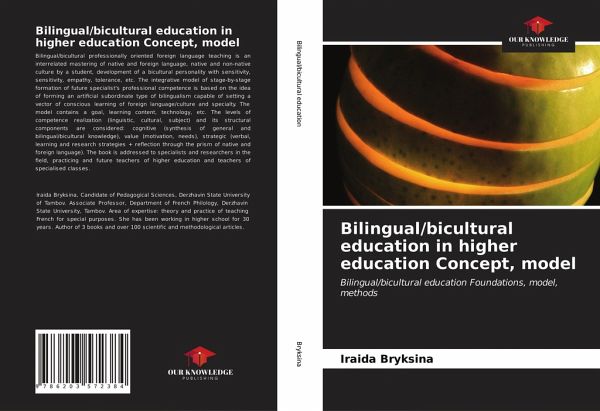 Bilingual/bicultural professionally oriented foreign language teaching is an interrelated mastering of native and foreign language, native and non-native culture by a student, development of a bicultural personality with sensitivity, sensitivity, empathy, tolerance, etc. The integrative model of stage-by-stage formation of future specialist's professional competence is based on the idea of forming an artificial subordinate type of bilingualism capable of setting a vector of conscious learning of foreign language/culture and specialty. The model contains a goal, learning content, technology, etc. The levels of competence realization (linguistic, cultural, subject) and its structural components are considered: cognitive (synthesis of general and bilingual/bicultural knowledge), value (motivation, needs), strategic (verbal, learning and research strategies + reflection through the prism of native and foreign language). The book is addressed to specialists and researchers in the field, practicing and future teachers of higher education and teachers of specialised classes.