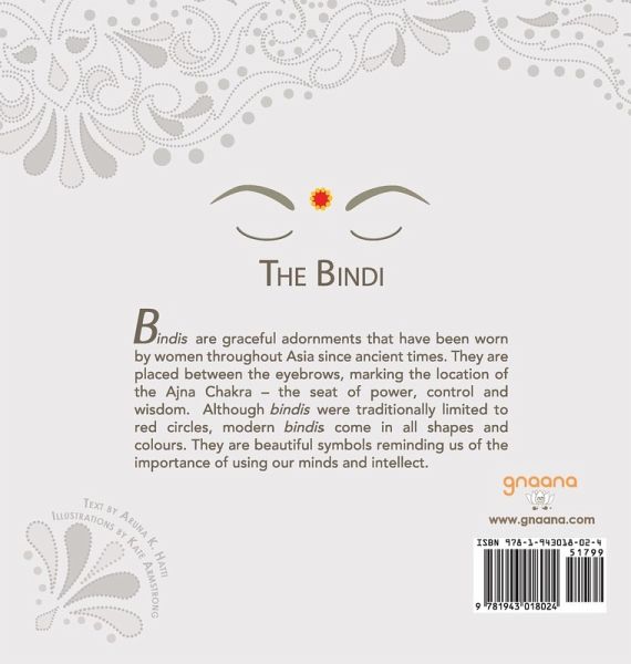 Learn Hindi animals with Bindi Baby by Gnaana. High-style graphics blend modern silhouettes with Indian design elements. The bold colors and rich patterns are designed to attract and delight - encouraging fun and easy learning. Appropriate for babies, toddlers and beginning readers of Hindi script. *English transliteration of Hindi text included to help with pronunciation. *Includes Hindi alphabet chart. What is a bindi? [From Back Cover]: Bindis are graceful adornments that have been worn by women throughout Asia since ancient times. They are placed between the eyebrows, marking the location of the Ajna Chakra - the seat of power, control and wisdom. Although bindis were traditionally limited to red circles, modern bindis come in all shapes and colours. They are beautiful symbols reminding us of the importance of using our minds and intellect.