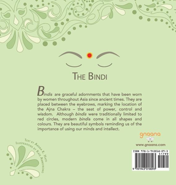 Ek...Do...Teen...Learn to count in Hindi with Bindi Baby by Gnaana! From 0 to the Number 10, kids will delight in counting these everyday outdoor-inspired objects - and learn about forming and using plurals. Numbers 11-20, 21-100, and even bigger numbers are also included at the end of the book. Appropriate for babies, toddlers and beginning readers of Hindi script. *Hindi transliteration included to help with pronunciation. *Includes chart of Hindi numbers 0-20, 21-100, and even bigger numbers. *Includes a lesson on Aryabhata - one of the greatest mathematicians and astronomers in the history of India - and his discovery of the "number 0." What is a bindi? [From Back Cover]: Bindis are graceful adornments that have been worn by women throughout Asia since ancient times. They are placed between the eyebrows, marking the location of the Ajna Chakra - the seat of power, control and wisdom. Although bindis were traditionally limited to red circles, modern bindis come in all shapes and colours. They are beautiful symbols reminding us of the importance of using our minds and intellect.