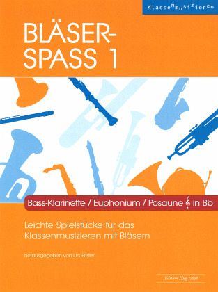 Leichte Spielstücke für das Klassenmusizieren mit Bläsern Bläserspass 1 ist auf das gemeinsame Musizieren mit Blasinstrumenten in Volksschulklassen ausgerichtet. Für das erste Unterrichtsjahr einer Bläserklasse oder eines Jugendblasorchesters Stimmenheft Bass-Klarinette/Posaune/Euphonium (Violinschlüssel), Notenformat, 8 Seiten