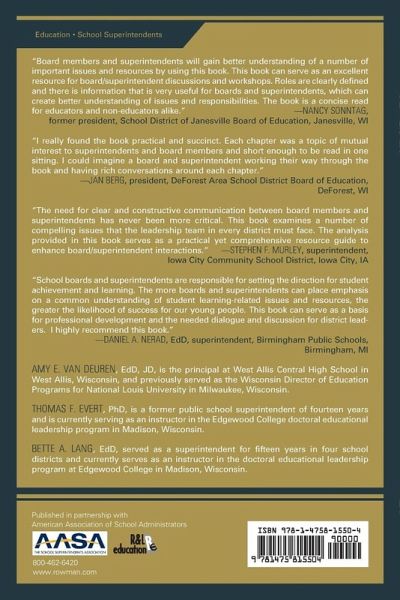 The Board and Superintendent Handbook: Current Issues and Resources is a practical guide for both board members and superintendents. The book includes contributions from experienced and new superintendents and board members on a wide range of topics that boards and superintendents must navigate together successfully in order to move districts in a positive direction for students, staff, parents, and communities.