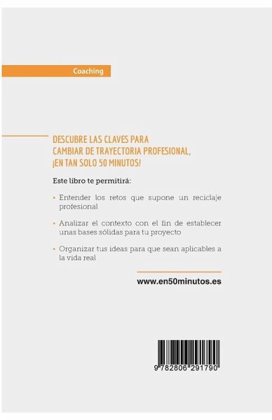 Los mejores consejos para darle un vuelco a tu trayectoria laboral Este libro es una guía práctica y accesible para cambiar de trayectoria profesional, que te aportará la información esencial y te permitirá ganar tiempo. En tan solo 50 minutos podrás: ¿ Establecer un análisis detallado de las razones que te empujan hacia un cambio en tu trayectoria profesional ¿ Aprender cuáles son las actitudes correctas para abrazar el cambio y analizar tu proyecto desde un punto de vista objetivo ¿ Elaborar un plan de trabajo que te permita determinar con detalle los puntos fuertes y débiles de tu plan SOBRE en50MINUTOS.ES Coaching en50MINUTOS.ES te ofrece las claves para sacar el máximo partido a tus capacidades y lograr la plenitud profesional y personal para conseguir todas tus metas. Nuestras obras combinan teoría, estudios de caso y múltiples ejemplos prácticos para que puedas alcanzar el éxito y la satisfacción en su vida laboral y privada sin perder el tiempo. ¡Descubre en un tiempo récord las claves para triunfar en la vida y ser más feliz!