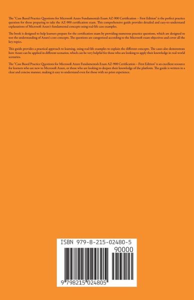 The "Case Based Practice Questions for Microsoft Azure Fundamentals Exam AZ-900 Certification - First Edition" is the perfect practice question for those preparing to take the AZ-900 certification exam. This comprehensive guide provides detailed and easy-to-understand explanations of Microsoft Azure's fundamental concepts using real-life case examples. The book is designed to help learners prepare for the certification exam by providing numerous practice questions, which are designed to test the understanding of Azure's core concepts. The questions are categorized according to the Microsoft exam objectives and cover all the key topics. This guide provides a practical approach to learning, using real-life examples to explain the different concepts. The cases also demonstrate how Azure can be applied in different scenarios, which can be very helpful for those who are looking to apply their knowledge in real-world scenarios. The "Case Based Practice Questions for Microsoft Azure Fundamentals Exam AZ-900 Certification - First Edition" is an excellent resource for learners who are new to Microsoft Azure, or those who are looking to deepen their knowledge of the platform. The guide is written in a clear and concise manner, making it easy to understand even for those with no prior experience.
