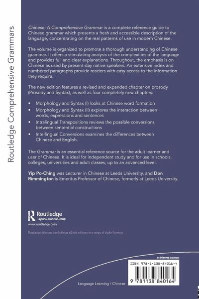 Chinese: A Comprehensive Grammar is a complete reference guide to Chinese grammar which presents a fresh and accessible description of the language, concentrating on the real patterns of use in modern Chinese.