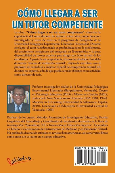 La obra, ?Cómo llegar a ser un tutor competente?, sintetiza la experiencia del autor durante los últimos veinte años, como docente-investigador y tutor de tesis en el programa de postgrado de la Universidad Pedagógica Experimental Libertador (Venezuela). Durante este lapso, el autor ha reflexionado en profundidad sobre la problemática del crecimiento vertiginoso del postgrado en Iberoamérica y la poca disponibilidad de tutores expertos para dirigir con éxito las tesis de los estudiantes. A partir de esta experiencia, el autor ha diseñado el modelo de tutoría ?sistema de mediación tutorial?, objeto de este libro, con el propósito de contribuir a mejorar el perfil de competencia tutorial del docente no-experto, a fin de que pueda ser más eficiente en su actividad como director de tesis.