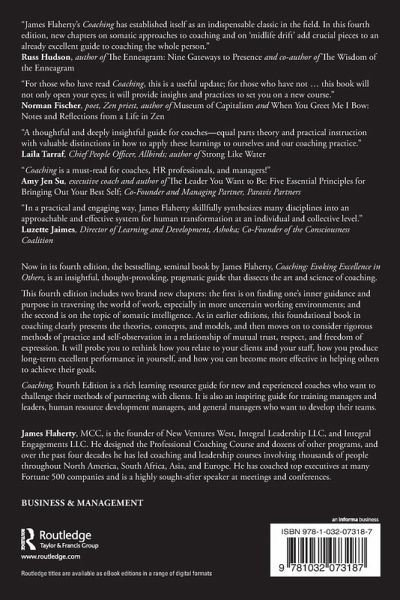 "James Flaherty's Coaching has been for some years a foundational text for the field. This fourth edition updates the material and adds two vital new chapters, Somatic Intelligence and Midlife Drift. I continue to be impressed with James's clarity, thoroughness, compassion, wisdom, and his generous referencing of a wide variety of useful sources. For those who have read Coaching, this is a useful update; for those who have not-whether you are a new or an experienced coach or interested in exploring coaching-this book will not only open your eyes; it will provide insights and practices to set you on a new course."