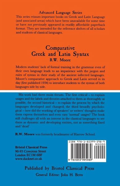 Modern students' lack of formal training in the grammar even of their own language leads to an impatience with the jargon and rules of syntax in their study of the ancient inflected languages. This comparative approach to Greek and Latin (first published in 1934) serves to introduce students to the syntax of both languages side by side. The book has three main thrusts: the first critical - to explain usages and the labels and theories attached to them; the second historical - to explain the process by which the languages developed and changed; the third psychological - how did the working of speakers' or writers' thoughts make them express themselves and even vary 'normal' usages? The book still challenges anyone with an interest in the classical languages to see them as dynamic, developing entities, not as something fixed or dead.