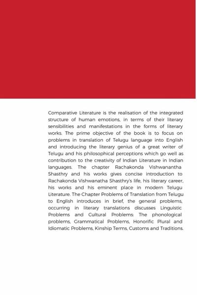 Comparative Literature is the realisation of the integrated structure of human emotions, in terms of their literary sensibilities and manifestations in the forms of literary works. The prime objective of the book is to focus on problems in translation of Telugu language into English and introducing the literary genius of a great writer of Telugu and his philosophical perceptions which go well as contribution to the creativity of Indian Literature in Indian languages. The chapter Rachakonda Vishwanantha Shasthry and his works gives concise introduction to Rachakonda Vishwanatha Shasthry's life, his literary career, his works and his eminent place in modern Telugu Literature. The Chapter Problems of Translation from Telugu to English introduces in brief, the general problems, occurring in literary translations discusses Linguistic Problems and Cultural Problems: The phonological problems, Grammatical Problems, Honorific Plural and Idiomatic Problems, Kinship Terms, Customs and Traditions.