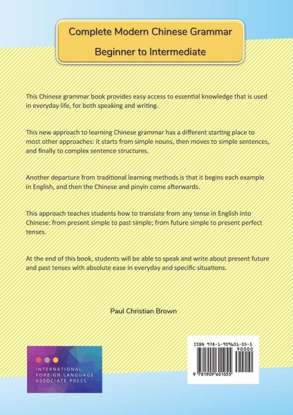 A word from the author: Having spent years trying to learn Chinese the traditional way, I quickly realised that the logic behind it was not suitable for me. Therefore, as a teacher I have spent the last 5 years designing a series of Chinese grammar books that allow a native-born English speaker to go from English grammar to Chinese, rather than the traditional way of starting from Chinese grammar and then relating it to English grammar. In this way, a native-born English speaker, who thinks in English, can learn to translate from English to Chinese using this style of learning. Who is this book for? This book is for anyone wishing to learn how to use Chinese for speaking, reading and writing. The information contained within this book is enough to pass HSK 3, but the book itself is designed to get non-native speakers to use Chinese effectively on a day-to-day basis. You might want to send messages, write emails, conduct in-depth conversations, or give presentations in Chinese. If so, then the beginner to intermediate edition provides all the grammar needed to communicate with native Chinese people about everyday issues. How to use the book: The book is divided into 140 units, and after every 7 units there is a summary page that can be used to review what has been studied. With this book, students will start learning simple nouns, then simple sentences and finally finishing on intermediate level structures. The tenses that are taught are 'present simple, present continuous, future simple and past simple'. In other words, by the end of the book, students should be able to talk and write about the past, present and future. In fact, there is enough information contained within that students should be able to live and work in China without fear of making any mistakes or not being able to communicate an everyday idea or opinion.