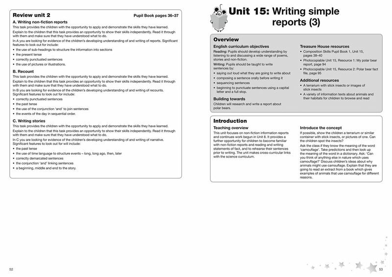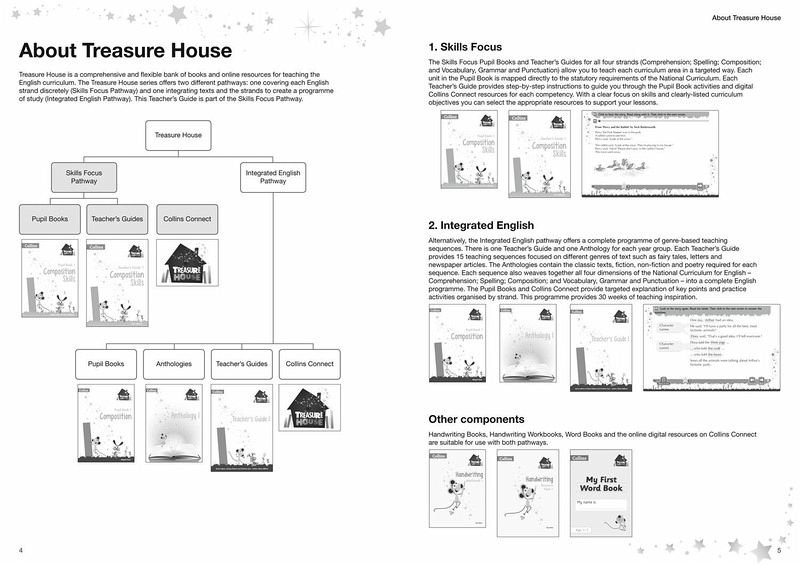 Treasure House Composition Skills Teacher's Guides provide at-a-glance lesson planning to guide teachers through the activities in Treasure House Composition Skills Pupil Books. Treasure House Composition Skills Teacher's Guide 1: - provides at-a-glance planning with overviews, step-by-step instructions and answer keys for all Pupil Book units - offers ideas to enable all children to access learning in Support, Embed and Challenge sections - targets individual learning needs with photocopiable resources - maps units to the 2014 National Curriculum for English