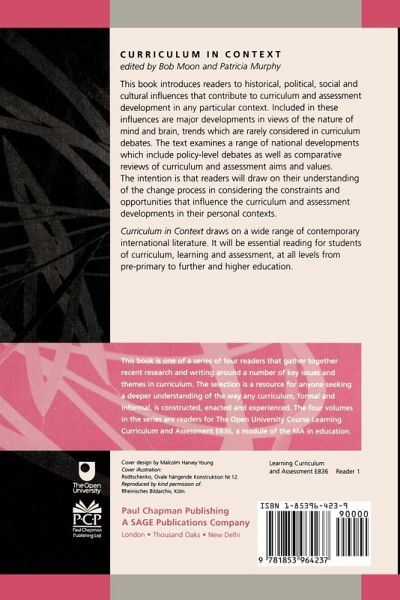 This textbook provides an introduction to the historical, political, social and cultural influences that contribute to curriculum assessment and development. It examines a range of national developments which include policy level debates as well as comparative reviews of curriculum and assessment aims and values. The majority of the chapters in the book are drawn from contemporary writing. Curriculum in Context is a Course Reader for The Open University course E836 Learning Curriculum and Assessment.