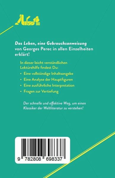 Was sollte man sich von Das Leben, eine Gebrauchsanweisung, diesem totalen soziologischen Roman, merken? In einer umfassenden und detaillierten Analyse finden Sie alles, was Sie über dieses Werk wissen müssen. In dieser Karteikarte finden Sie unter anderem: - Eine Zusammenfassung der Sammlung und ihrer Hauptthemen - Einige Erläuterungen zu den Hauptfiguren wie Gaspard Winckler, Bartlebooth und Serge Valène. - Eine Analyse der Besonderheiten des Werks: Ein oulipianisches Buch; Georges Perec, ein Romanautor; Das Konzept des Puzzles im Zentrum des Werks. Eine Referenzanalyse, um die Bedeutung des Werks schnell zu verstehen.