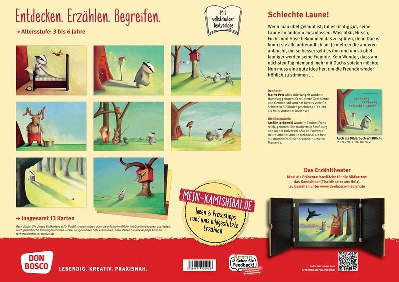 Wenn sich der Vorhang des Kamishibai-Erzähltheaters hebt, erleben die Zuhörer:innen, wie der Dachs seine Wut an seinen tierischen Freunden auslässt. Je mehr er die anderen anfaucht, umso besser scheint es ihm zu gehen - doch umso übellauniger werden die anderen Tiere. Die Erzählbilder ermuntern so schon jüngere Kinder, konzentriert zuzuhören und mitzumachen. Dabei haben Sie während einer Vorlesestunde mit dem Kamishibai alle immer im Blick und können jederzeit auf Gesten, Gefühle und Fragen reagieren.
