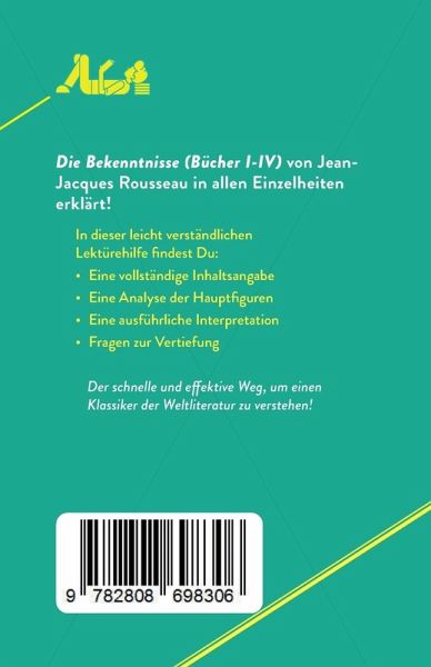 Was sollte man aus den Bekenntnissen (Bücher I-IV), der berühmten Autobiografie eines der größten Philosophen der Aufklärung, lernen? Finden Sie alles, was Sie über dieses Werk wissen müssen, in einer vollständigen und detaillierten Lesekarte. In dieser Karteikarte finden Sie unter anderem : - Eine vollständige Zusammenfassung - Eine Darstellung der Hauptfiguren wie Jean-Jacques Rousseaus Familie, die Bernards und Jean-Jacques Rousseau. - Eine Analyse der Besonderheiten des Werkes: Die Bekenntnisse: Emotionen im Zentrum eines neuartigen Unternehmens, eine strategische Schreibweise, die vielfältige Rolle der Leser und die Thematik der Natur. Eine Referenzanalyse, um die Bedeutung des Werks schnell zu verstehen.