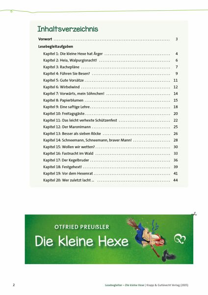 Mit dem Lesebegleiter zur Der kleinen Hexe tauchen Kinder tief in die Welt der kleinen Hexe und ihres treuen Raben Abraxas ein. Die abwechslungsreichen und interaktiven Aufgaben begleiten das Lesen und fördern das Textverständnis, kreatives Denken sowie Sprach- und Schreibfähigkeiten.