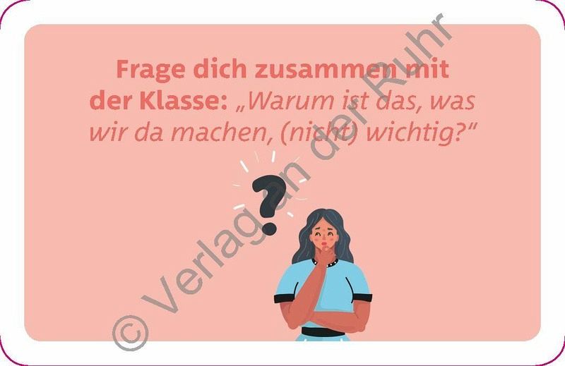 Schönes für Lehrer und Lehrerinnen an allen Schulformen, für alle Fächer, Klasse 1-13 +++ Einfach mal machen, könnte ja gut werden! Das gilt für diese kleinen Inspirationen und Innovationen für Schule, Unterricht, das Kollegium und Sie selbst. "Klein" steht dabei für das Format und die Unaufwändigkeit der Ideen. Denn ihre Wirkung kann durchaus sehr groß ausfallen. Ob Sie eine neue Methode als Anregung für den Unterricht ausprobieren, den Schüler und Schülerinnen mal anders begegnen und damit Schule ein wenig verändern oder an sich selbst arbeiten und Ihre Lehrerrolle reflektieren. Die Anregungen haben stets die Praxis im Blick, sind weder abgehoben noch aufwändig und benötigen nur etwas Eigeninitiative. Bringen Sie Abwechslung in den Unterricht und den Schulalltag und ziehen Sie täglich oder wöchentlich eine Inspiration für sich selbst oder überraschen Sie das Kollegium mit einer gemeinsamen "Inspirationskiste", für deren Gestaltung wir die Aufkleber gleich mitliefern. Dafür genügt ein Karton oder handelsüblicher Karteikasten. Wenn Sie diesen entsprechend gestalten, mit den Kärtchen bestücken und ins Lehrerzimmer stellen, werden Sie schnell mit den Kollegen und Kolleginnen ins Gespräch kommen und erstaunt sein, wie leicht der Austausch auch in konservativen Kollegien gelingt und wie viel kleine Veränderungen bewirken können. Lassen Sie sich davon überraschen, welche Kolleg_innen sich auf die Inspirationen einlassen und vielleicht recht bald die "Inspirationskiste" auch um eigene Ideen ergänzen. Ausprobieren lohnt sich!