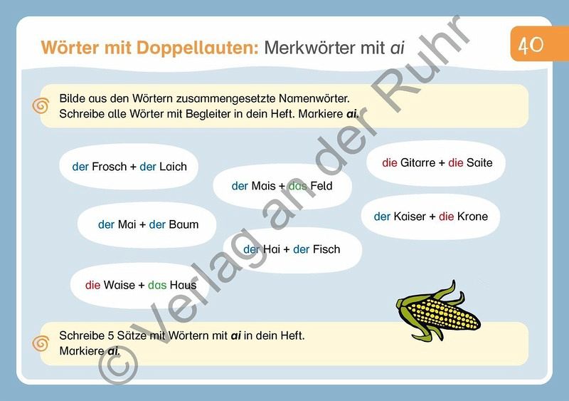 Unterrichtsmaterial für Lehrer und Lehrerinnen an Grund- und Förderschulen, Fach: Deutsch, Klasse 3-4 +++ Groß oder klein? Mit z oder tz? Y oder i? Für frühe Rechtschreibprofis ist diese Übungskartei mit ihren 60 Kärtchen genau der richtige Baukasten: Karte für Karte können die Grundschüler und -schülerinnen die vielen orthografischen Stolpersteine der deutschen Sprache bearbeiten und mit jeder neuen Rechtschreibübung Sicherheit gewinnen.Von Anlaut bis X-Laut: Die Kinder üben alle relevanten Rechtschreibphänomene - u. a. die Großschreibung, Auslautverhärtung, das Dehnungs-h und Doppelkonsonanten.Auf der Vorderseite der farbigen A5-Karten finden die Schüler und Schülerinnen die Aufgaben, auf der Rückseite jeweils die Lösung. Die Kartei bietet einfache, wiederkehrende Aufgabenformate, die ein selbstständiges und flexibles Lernen ermöglichen. Die Kinder arbeiten in ihren Heften oder auf einem Extrablatt, das Trainingsmaterial wird also nicht beschrieben und kann beliebig oft eingesetzt werden. Da die Kinder ihre Aufgaben selbst kontrollieren können, eignet sich das Kartenset auch prima für die Freiarbeit.
