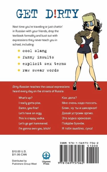 GET D!RTY Next time you’re traveling or just chattin’ in Russia with your friends, drop the textbook formality and bust out with expressions they never teach you in school, including: • Cool slang • Funny insults • Explicit sex terms • Raw swear words Dirty Russian teaches the casual expressions heard every day on the streets of Russia: What's up? kak de-LA? I really gotta piss. mnye O-chen NA-do pos-SAT. Damn, you fine! blin, nu ti i shi-KAR-nii! Let's have an orgy. da-VAI u-STRO-im OR-gi-yu. This is crappy vodka. d-ta VOD-ka khre-NO-va-ya. Let's go get hammered. poi-DYOM bukh-NYOM. I'm gonna own you, bitch! ya te-BYA VI-ye-blyu!