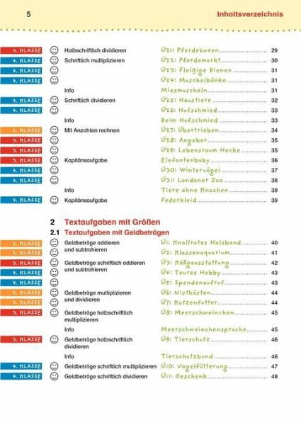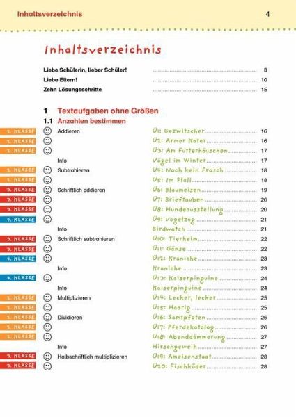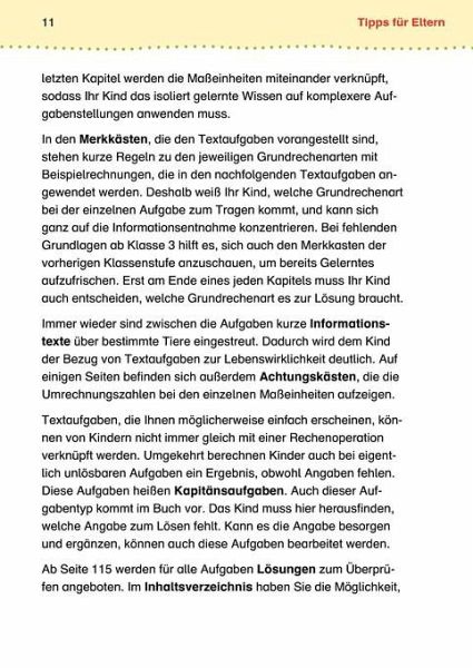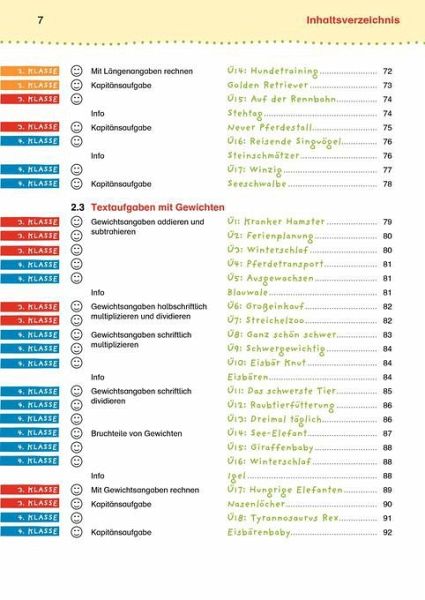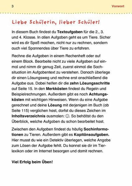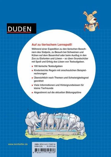 Im Zoo, auf dem Bauernhof oder mit den Eisbären in der Arktis - so lernen Grundschüler mit Spaß und Erfolg Textaufgaben zu lösen. In dem Band "100 tierische Textaufgaben" werden alle relevanten Themengebiete der Mathematik von der 2. bis zur 4. Klasse geübt. Alle 100 Textaufgaben sind übersichtlich nach den Themen "Textaufgaben ohne Größen" und "Textaufgaben mit Größen" sowie nach Schwierigkeitsgrad geordnet und enthalten kinderleichte Regeln und Beispielrechnungen - abgestimmt auf die neuen Bildungspläne.