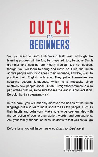 If you want to learn the Dutch language without any previous knowledge, then keep reading... Do you want to learn Dutch, but don't know how - or where - to start? If so, you've come to the right place. The purpose of this book is to show you that you can learn the Dutch language, no matter how hard it might seem in the beginning. Within this book, you'll find tiny tasks that will allow you to practice your skills. You'll also find many useful words and phrases for reference during your learning, and for a long time after. Many real-life conversations and situations included in this book make it a perfect companion on your learning journey. This book is divided into three parts:The Very Basics Grammar Conversation So, what are you waiting for? Grab this book now, and start learning Dutch today!