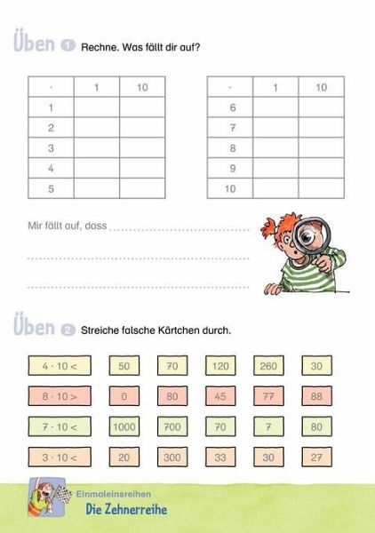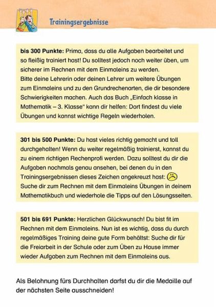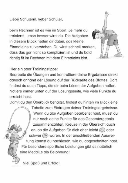 Mit diesem Übungsblock der Reihe "Einfach klasse in macht das Üben einfach Spaß Blatt für Blatt abwechslungsreiche und witzig illustrierte Aufgaben zum Einmaleins mit Zahlen bis 1.000, zugeschnitten für die 3. Klasse. Die Lösungen finden sich gleich auf der Blattrückseite und sind mit nützlichen Tipps versehen. Durch ein Punktesystem wird der Lernerfolg schnell sichtbar.