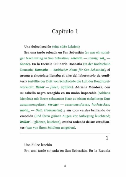 Leseprobe: https://easyoriginal.com/leseproben/DS33.pdf Spanische Krimi-Lektüre für Anfänger (A1-A2) - Frank-Lesemethode mit erklärenden Einfügungen & Audio-DownloadTauchen Sie ein in einen Kriminalfall - und verbessern Sie dabei spielerisch Ihr Spanisch!Diese spannende Kurzgeschichte ist Teil der beliebten Reihe für Sprachlernende und basiert auf der bewährten Frank-Lesemethode. Handlung: El Código del Cacao Perdido - Der Code der verlorenen KakaobohneIn den duftenden Straßen von San Sebastián beginnt ein süßes Geheimnis zu schmelzen...Adriana Mendoza, eine brillante Chocolatière und Dozentin an der renommierten Escuela Culinaria Donostia, ahnt nicht, dass ihr Wissen über Schokolade bald auf eine ganz neue Probe gestellt wird. Als der berühmte Chocolatier Eneko Aranbarri verkündet, eine längst vergessene aztekische Kakaosorte wiederentdeckt zu haben, sorgt diese Nachricht für Furore. Doch bevor die Welt seinen sensationellen Fund kosten kann, wird sein Labor verwüstet - und die wertvollen Kakaosamen sind verschwunden.Ein aromatisches Mysterium entfaltet sich, während Adriana und ihr Team sich auf die Suche nach der Wahrheit machen. Wer steckt hinter dem Diebstahl? Welche Geheimnisse verbirgt der "Code des Kakaos"? Und kann ein einziger Geschmack die Geschichte der Schokolade für immer verändern?Ein raffinierter kulinarischer Krimi voller sinnlicher Aromen, alter Traditionen und spannender Enthüllungen - perfekt für alle Schokoladenliebhaber und Fans fesselnder Rätsel! Was dieses Buch besonders macht Frank-Lesemethode: Deutsche Erklärungen und Hilfen sind direkt im spanischen Text integriert - ohne den Lesefluss zu unterbrechen Keine klassische Übersetzung, sondern kontextbasierte Unterstützung Originaltext auf B1-Niveau, aber vollständig lesbar für A1-A2 durch gezielte sprachliche Hilfen Inklusive Audio-Download für gezieltes Hörverständnis und Nachsprechen Vorteile für SprachlernendeZugang zu authentischem Spanisch ab der ersten Seite - ohne ÜberforderungWortschatzaufbau im Kontext, nicht isoliertVerstärkung von Grammatik, Ausdruck und SprachgefühlIdeal für Selbstlerner, Wiedereinsteiger und motivierende Unterrichtslektüre Diese Geschichte ist Teil einer umfangreichen Reihe für Deutschsprachige, die mit echter Literatur und professioneller sprachlicher Begleitung Spanisch lernen möchten. Audio inklusive. Mehr zur Methode: https://easyoriginal.com/frank-lesemethode