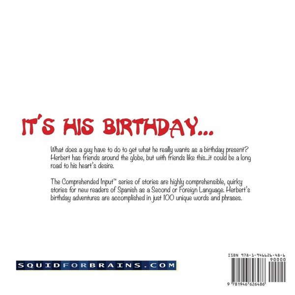 It's Herbert's birthday...and even a guy with a ping-pong ball for a head has his wishes for that special day. Herbert's friends have other ideas, though. How will Herbert finally celebrate his big day? A simple but unpredictably-repetitive read for new readers of Spanish. Most books for emergent readers of Spanish are designed for a native-speaking emergent reader age group (3-6 years of age) and so can be poorly accepted by older learners of English who still need very simple language, and often contain low-frequency difficult vocabulary. Vocabulary and structure in this book focus on useful items like "birthday", "goes to", "is angry", "is sad", and other high-frequency words and structures.