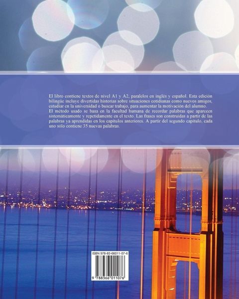 El libro contiene textos de nivel A1 y A2, paralelos en inglés y español. Esta edición bilingüe incluye divertidas historias sobre situaciones cotidianas como nuevos amigos, estudiar en la universidad o buscar trabajo, para aumentar la motivación del alumno. El método usado se basa en la facultad humana de recordar palabras que aparecen sistemáticamente y repetidamente en el texto. Las frases son construidas a partir de las palabras ya aprendidas en los capítulos anteriores.