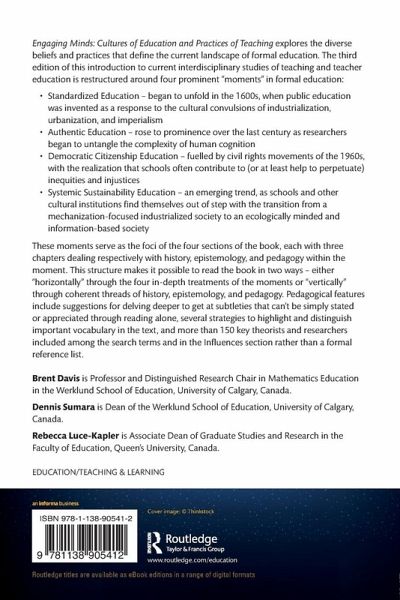 Engaging Minds: Cultures of Education and Practices of Teaching explores the diverse beliefs and practices that define the current landscape of formal education. The 3rd edition of this introduction to interdisciplinary studies of teaching and learning to teach is restructured around four prominent historical moments in formal education: Standardized Education, Authentic Education, Democratic Citizenship Education, Systemic Sustainability Education. These moments serve as the foci of the four sections of the book, each with three chapters dealing respectively with history, epistemology, and pedagogy within the moment. This structure makes it possible to read the book in two ways - either "horizontally" through the four in-depth treatments of the moments or "vertically" through coherent threads of history, epistemology, and pedagogy. Pedagogical features include suggestions for delving deeper to get at subtleties that can't be simply stated or appreciated through reading alone, several strategies to highlight and distinguish important vocabulary in the text, and more than 150 key theorists and researchers included among the search terms and in the Influences section rather than a formal reference list.