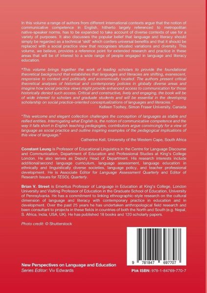 Constant Leung is Professor of Educational Linguistics in the Centre for Language Discourse and Communication, Department of Education and Professional Studies at King's College London. He also serves as Deputy Head of Department. His research interests include additional/second language curriculum, language assessment, language education in ethnically and linguistically diverse societies, language policy, and teacher professional development. He is Associate Editor for Language Assessment Quarterly and Editor of Research Issues for TESOL Quarterly. Brian V Street is Emeritus Professor of Language in Education at King's College, London University and Visiting Professor of Education in the Graduate School of Education, University of Pennsylvania. He has a commitment to linking ethnographic-style research on the cultural dimension of language and literacy with contemporary practice in education and in development. Over the past 25 years he has undertaken anthropological field research and been consultant to projects in these fields in countries of both the North and South (e.g. Nepal, S. Africa, India, USA, UK). He has published 18 books and 120 scholarly papers.