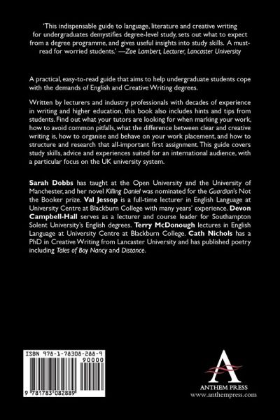 Sarah Dobbs received an MA and PhD in Creative Writing from Lancaster University and has also taught at the Open University and Manchester University. Her novel, 'Killing Daniel', was published by Unthank Books in 2012 and nominated for the Guardian's Not the Booker prize in 2013. Val Jessop received her PhD in Linguistics from Lancaster University and is currently a full-time lecturer in English Language with many years' experience in teaching undergraduates. She is also the programme leader for the BA in English Language and Literary Studies. Devon Campbell-Hall completed her MA and PhD in English at the University of Winchester and now serves as a lecturer and course leader for Southampton Solent University's English degrees. She is passionate about teaching literature and widening participation in higher education. Terry McDonough lectures in English Language at University Centre Blackburn College, having previously taught at several other UK institutions. He recently completed a two-year research project for the Higher Education Academy aimed at establishing links between academia and local community groups. Cath Nichols has an MA and PhD in Creative Writing from Lancaster University and has published poetry including 'Tales of Boy Nancy' (Driftwood, 2005) and 'Distance' (erbacce, 2012). Her 'Birdie' was shortlisted for the International Playwriting Student Award.