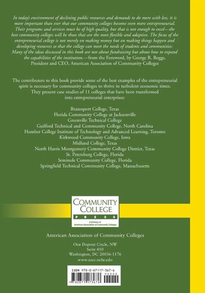 Develop an entrepreneurial culture with the best practices discussed inside this resource. Declining public resources, coupled with the demand that we do more with less, make it more of an imperative that entrepreneurism, flexibility, and adaptability thrive in the community college environment. Seeing how other community colleges have brought entrepreneurship and creativity to life in their programs and services will inspire your own ideas for increasing revenue and reducing costs. You will also discover how strong leaders can become collaborators, facilitators, consensus makers, and incentive providers.