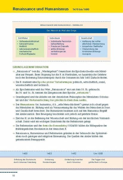 - Der grafische Überblick über die wichtigsten Epochenmerkmale erleichtert die Orientierung und den Epochenvergleich.
