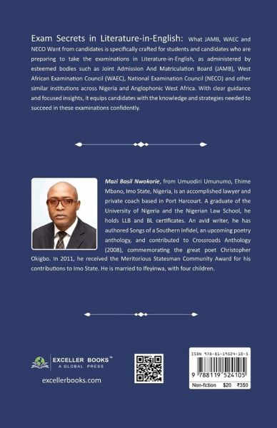 Exam Secrets in Literature-in-English: What JAMB, WAEC, NECO and NABTEB Want from candidates is specifically crafted for students and candidates who are preparing to take the examinations in Literature-in-English, as administered by esteemed bodies such as Joint Admission And Matriculation Board (JAMB), West African Examination Council (WAEC), National Examination Council (NECO) and other similar institutions across Nigeria and Anglophonic West Africa. With clear guidance and focused insights, it equips candidates with the knowledge and strategies needed to succeed in these examinations confidently.