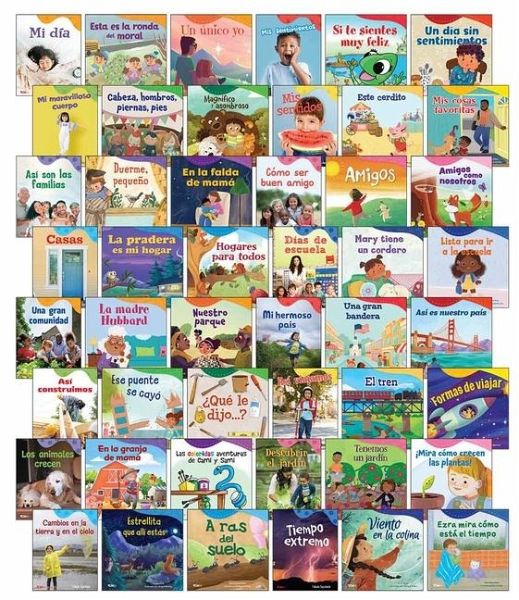 Create a Rich, Shared Reading Experience for Early and Developing Readers Exploration Storytime 48-Book Spanish set includes titles covering the following eight themes: - Who Am I? - How Does My Body Work? - Who Cares for Me? - Where Do I Grow and Learn? - Where Do We Live? - How Do We Make and Explore Our World - What Lives on Earth? - What Effects Our Planet? These highly engaging resources, meant to be read together, connect to early learners' daily lives with vivid, full-color photographs and images. Perfect for parents and librarians, this comprehensive bundle provides a full year of learning and Storytime fun. Each title includes parent-friendly information to help extend learning. Build fundamental skills while helping your child make connections and discoveries, with this mega Spanish set from the Exploration Storytime series!