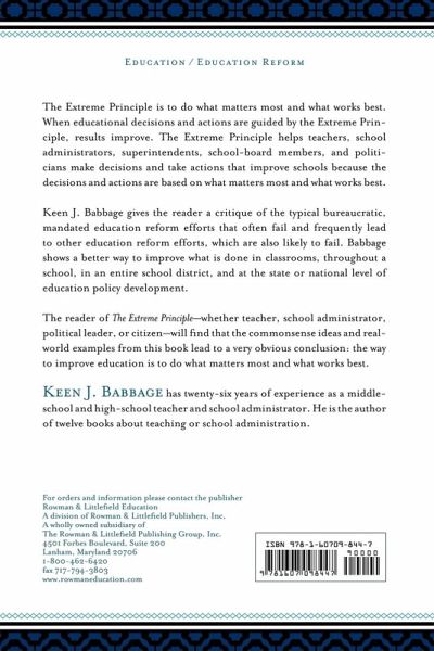 This book gives the reader a critique of the typical, bureaucratic, mandated education reform efforts which often fail and which often lead to another education reform effort which also is likely to fail. This book shows a better way to improve what is done in classrooms, throughout a school, in an entire school district, and at the state or national levels of education policy development. The better way is guided by application of The Extreme Principle.