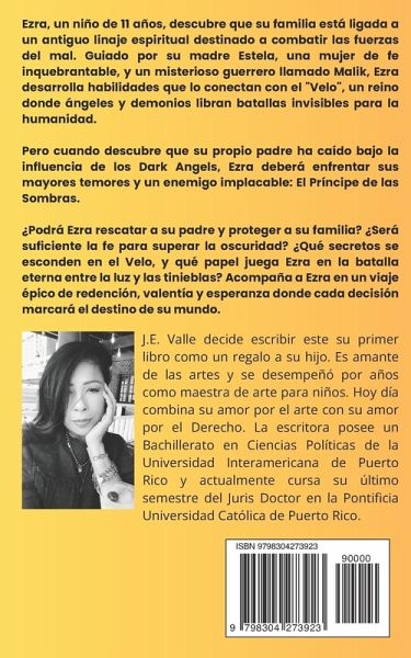 Sinopsis Ezra, un niño de 11 años, descubre que su familia está ligada a un antiguo linaje espiritual destinado a combatir las fuerzas del mal. Guiado por su madre Estela, una mujer de fe inquebrantable, y un misterioso guerrero llamado Malik, Ezra desarrolla habilidades que lo conectan con el "Velo", un reino donde ángeles y demonios libran batallas invisibles para la humanidad. Pero cuando descubre que su propio padre ha caído bajo la influencia de los Dark Angels, Ezra deberá enfrentar sus mayores temores y un enemigo implacable: El Príncipe de las Sombras. ¿Podrá Ezra rescatar a su padre y proteger a su familia? ¿Será suficiente la fe para superar la oscuridad? ¿Qué secretos se esconden en el Velo, y qué papel juega Ezra en la batalla eterna entre la luz y las tinieblas? Acompaña a Ezra en un viaje épico de redención, valentía y esperanza donde cada decisión marcará el destino de su mundo.