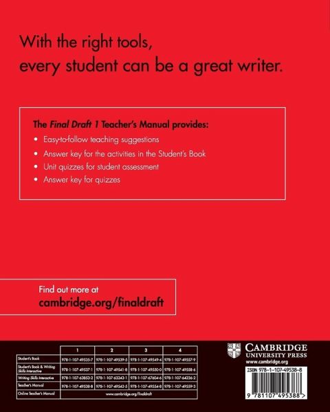 Academic writing is difficult, and Final Draft gives students all the tools they need and prepares students to become confident and effective writers and succeed in their future studies. It gives students the tools to master academic writing by learning a systematic approach that focuses on foundational and higher-level skills. Students are introduced to the rhetorical modes, academic vocabulary, and structures they need to develop their own academic voice. They also learn and edit by the most common grammar mistakes drawn from a unique collection of over 50 million examples of nonnative speakers' writing, promoting accuracy in writing. Every Student's Book includes access to Writing Skills Interactive, an online course with instruction and practice across a range of discrete writing skills and an eBook.