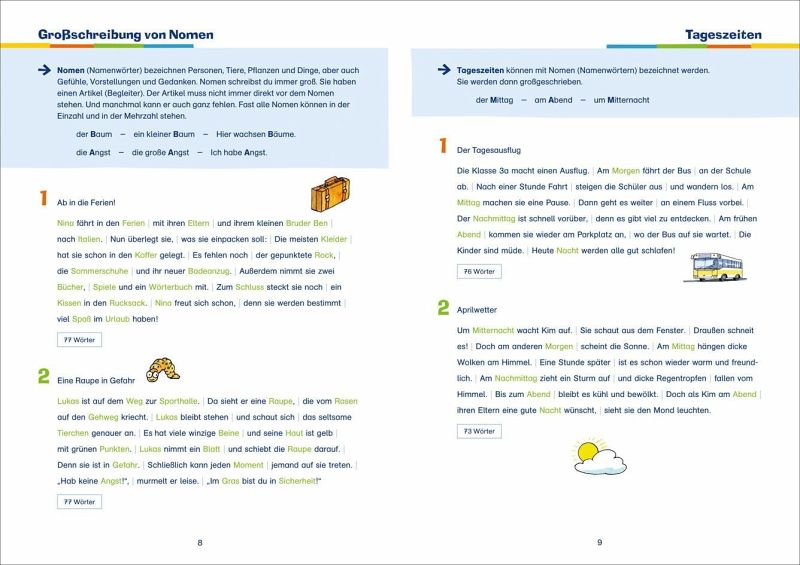 Übung macht den Meister! 88 Deutsch-Diktate zum Grundwortschatz der Klasse 3 helfen Schulwissen zu wiederholen und zu festigen. Lustige Diktattexte sowie Tipps zum richtigen Üben für Schüler und Eltern sorgen für Motivation und Erfolg beim Lernen. Alle Diktate orientieren sich an den Lehrplänen für die Grundschule.