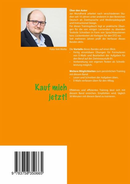 Die Vorteile dieses Bandes auf einen Blick: Fertig einsetzbare Übungen für Formulieren von E-Mails und Bearbeiten der Aufgaben für den Beruf auf der Zielniveaustufe B1. Vorbereitung von eigenen Texten als Schreibleistung möglich. Weitere Möglichkeiten zum persönlichen Training mit diesem Band: Lesen und Schreiben der Aufgaben üben, E-Mails verfassen üben für den Alltag. Effektives und effizientes Training lässt sich mit diesem Band erreichen. Empfohlen wird, täglich 30 Minuten mit diesem Band zu trainieren.