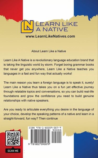 Immerse Yourself in Learning French with Short Stories that Make the Language Come Alive & Easy to Learn! Want to learn French the easiest and most exciting way possible? You came to the right place! Learning a second language is a great mental exercise if you want to create new neural pathways in your brain, so you can stay quick and sharp. Plus, learning a widely spoken language - French in particular - can open up a myriad of new opportunities for you in both life and work. One great obstacle that English speakers face when learning French is that they are in an environment where they can't fully immerse themselves in the language learning process. And that's why "French Short Stories for Beginners" by Learn Like a Native is perfect for beginners like you! "French Short Stories for Beginners" harnesses the power of a great tale in fast-tracking your learning process. It has several uniquely structured French-to-English short stories that are saturated with over 100 simple, easy-to-digest dialogues and daily used phrases, so you can seamlessly learn the language, even as you drive towards work! In the stories within, you will see people speaking to each other, going through daily life situations, and using the most common, helpful words and phrases in French. Learn Like a Native crafted this book with beginners in mind. Here is where you will find simple yet stimulating French language usage that is mostly in the present tense, so you will be able to effectively focus on dialogues and root verbs, as well as effortlessly understand and find patterns in subject-verb agreement. Over the course of this fun & game-changing guide, beginners like you will: Effortlessly learn basic French with the help of cleverly structured short stories for beginners Quickly absorb French terms for possessing common everyday objects Cleverly incorporate prepositions and common present tense verbs for any situation Easily relay your emotions, questions, likes, and dislikes in French anytime, anywhere And so much more! Forget about boring lectures on grammar and endless vocabulary lists. With the help of this book, English speakers like you can easily learn French and immerse themselves in it without having to leave the country! Scroll up, add this book to your library, and Start Learning French Today! P.S. Get the first ebook of the series FOR FREE at LearnLikeNatives.com