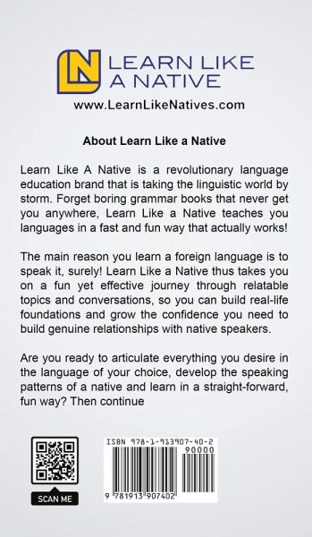 Immerse Yourself in Learning French with Short Stories that Make the Language Come Alive & Easy to Learn! Want to learn French the easiest and most exciting way possible? You came to the right place! Learning a second language is a great mental exercise if you want to create new neural pathways in your brain, so you can stay quick and sharp. Plus, learning a widely spoken language - French in particular - can open up a myriad of new opportunities for you in both life and work. One great obstacle that English speakers face when learning French is that they are in an environment where they can't fully immerse themselves in the language learning process. And that's why "French Short Stories for Beginners" by Learn Like a Native is perfect for beginners like you! "French Short Stories for Beginners" harnesses the power of a great tale in fast-tracking your learning process. It has several uniquely structured French-to-English short stories that are saturated with over 100 simple, easy-to-digest dialogues and daily used phrases, so you can seamlessly learn the language, even as you drive towards work! In the stories within, you will see people speaking to each other, going through daily life situations, and using the most common, helpful words and phrases in French. Learn Like a Native crafted this book with beginners in mind. Here is where you will find simple yet stimulating French language usage that is mostly in the present tense, so you will be able to effectively focus on dialogues and root verbs, as well as effortlessly understand and find patterns in subject-verb agreement. Over the course of this fun & game-changing guide, beginners like you will: Effortlessly learn basic French with the help of cleverly structured short stories for beginners Quickly absorb French terms for possessing common everyday objects Cleverly incorporate prepositions and common present tense verbs for any situation Easily relay your emotions, questions, likes, and dislikes in French anytime, anywhere And so much more! Forget about boring lectures on grammar and endless vocabulary lists. With the help of this book, English speakers like you can easily learn French and immerse themselves in it without having to leave the country! Scroll up, add this book to your library, and Start Learning French Today! P.S. Get the first ebook of the series FOR FREE at LearnLikeNatives.com