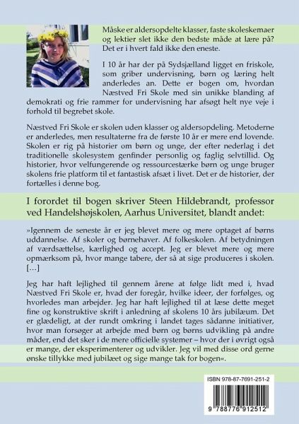 Måske er aldersopdelte klasser, faste skoleskemaer og lektier slet ikke den bedste måde at lære på? Det er i hvert fald ikke den eneste. I 10 år har der på Sydsjælland ligget en friskole, som griber undervisning, børn og læring helt anderledes an. Dette er bogen om, hvordan Næstved Fri Skole med sin unikke blanding af demokrati og frie rammer for undervisning har afsøgt helt nye veje i forhold til begrebet skole. Næstved Fri Skole er skolen uden klasser og aldersopdeling. Metoderne er anderledes, men resultaterne fra de første 10 år er mere end lovende. Skolen er rig på historier om børn og unge, der efter nederlag i det traditionelle skolesystem genfinder personlig og faglig selvtillid. Og historier, hvor velfungerende og ressourcestærke børn og unge bruger skolens frie platform til et fantastisk afsæt i livet. Det er de historier, der fortælles i denne bog. I forordet til bogen skriver Steen Hildebrandt, professor ved Handelshøjskolen, Aarhus Universitet, blandt andet: "Igennem de seneste år er jeg blevet mere og mere optaget af børns uddannelse. Af skoler og børnehaver. Af folkeskolen. Af betydningen af værdsættelse, kærlighed og accept. Jeg er blevet mere og mere opmærksom på, hvor mange tabere, der så at sige produceres i skolen. [¿] Jeg har haft lejlighed til gennem årene at følge lidt med i, hvad Næstved Fri Skole er, hvad der foregår, hvilke ideer, der forfølges, og hvorledes man arbejder. Jeg har haft lejlighed til at læse dette meget fine og konstruktive skrift i anledning af skolens 10 års jubilæum. Det er glædeligt, at der rundt omkring i landet tages sådanne initiativer, hvor man forsøger at arbejde med børn og børns udvikling på andre måder, end det sker i de mere officielle systemer - hvor der i øvrigt også er mange, der eksperimenterer og udvikler. Jeg vil med disse ord gerne ønske tillykke med jubilæet og sige mange tak for bogen".