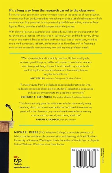 The transition from graduate studies to teaching is full of challenges. In this concise, practical guide for the aspiring professor, Michael Kibbe offers plenty of personal examples and tested advice as he covers preparation for teaching, best practices in the classroom, self-evaluation, and the discovery of your mission and method.