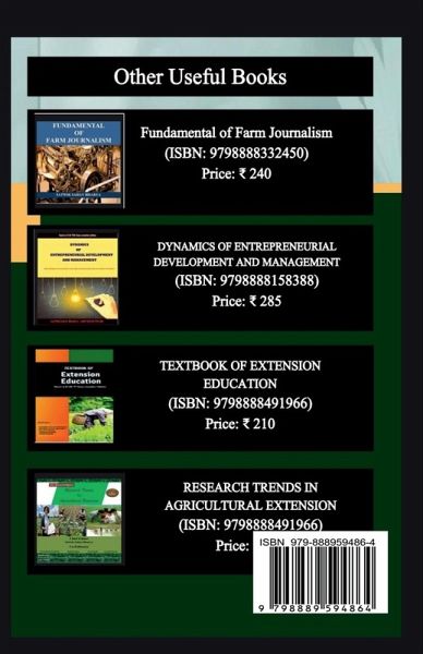 Agriculture is the backbone of Indian economy. In India, the competition in agricultural education is increasing day by day. The competitive examination is an only routine procedure of admission in Agricultural Universities, viz. Central Agriculture University (CAU), State Agricultural Universities (SAUs), Indian Agricultural Research Institute (IARI). The competitive examination is also an only routine procedure of recruitment in agricultural job/posts, viz. Agricultural Research Services, State PSC and UPSC. Thus, one has to prepare him/herself very strongly for these competition exams and for the success, need to read authentic and authorised reading materials. The knowledge of general agriculture is very essential for every competition exams related to agriculture. Many authors are attempted to compile the notes/books of general agriculture, in which, TNAU notes is well famous. Other books were also made impact on the readers. But still no book is there with authentic and authorised information. Therefore, I and my friends feel need to write this book. This book has been so as to serve, as best as possible to aim of writing this book.