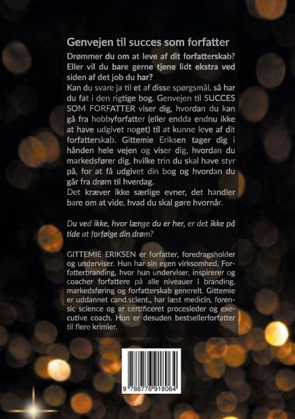 Drømmer du om at leve af dit forfatterskab? Eller vil du bare gerne tjene lidt ekstra ved siden af det job du har? Kan du svare ja til et af disse spørgsmål, så har du fat i den rigtige bog. "Genvejen til SUCCES SOM FORFATTER" viser dig, hvordan du kan gå fra hobbyforfatter (eller endda endnu ikke at have udgivet noget) til at kunne leve af dit forfatterskab. Gittemie Eriksen tager dig i hånden hele vejen og viser dig, hvordan du markedsfører dig, hvilke trin du skal have styr på, for at få udgivet din bog og hvordan du går fra drøm til hverdag. Det kræver ikke særlige evner, det handler bare om at vide, hvad du skal gøre hvornår. Du ved ikke, hvor længe du er her, er det ikke på tide at forfølge din drøm?