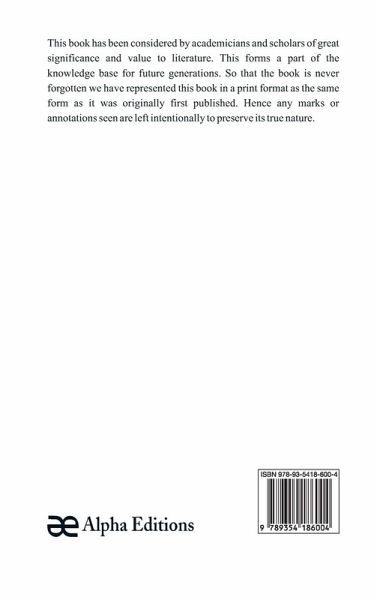 This book has been considered by academicians and scholars of great significance and value to literature. This forms a part of the knowledge base for future generations. So that the book is never forgotten we have represented this book in a print format as the same form as it was originally first published. Hence any marks or annotations seen are left intentionally to preserve its true nature.