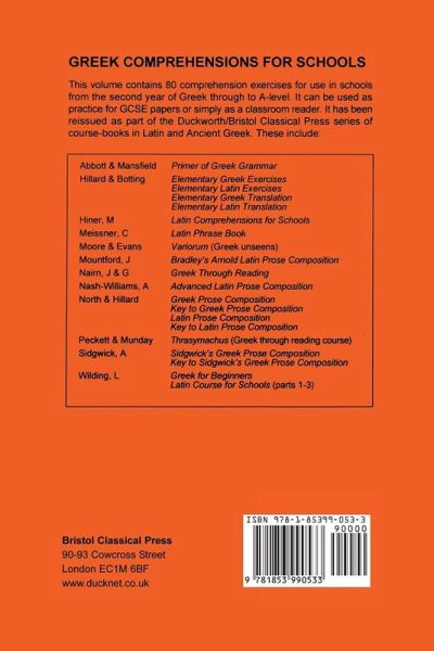A useful resource for the student of Ancient Greek, this book includes an interesting selection of passages in Greek by a variety of authors from Xenophon and Euripides to Plato. This book contains 80 comprehension exercises for use in schools from the second year of Greek through to A level. It can be used for GCSE papers or simply as a classroom reader. It is one of a series on course books on Latin and Ancient Greek.