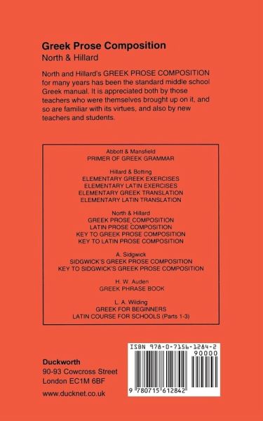 This classic Greek composition book has been in use thoroughout the world for over 100 years. It remains the standard middle school Grek manual. It features brief lesson overviews followed by English to Greek composition exercises. In the Appendix the student will find useful tables of verb stems, prepositions and particles. The book is suitable for both beginners and intermediate learners.