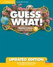 Guess What! special edition for Spain Updated covers the Cambridge Life Competencies. This six-level primary course invites children to explore the world through engaging facts, amazing photography and captivating videos. The full-colour Teacher's Book is interleaved with the Pupil's Book and includes an introduction with a full mapping to the new Key Competencies. It offers step-by-step guidance for each lesson, simple warmers and end of lesson activities; audio scripts and answer keys; photocopiable word cards to match the flashcards; extra games and activities for every lesson. The Digital Pack includes Presentation Plus, a Test Generator and the Teacher's Resource Bank.